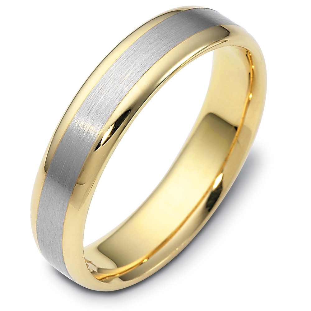 Traditional Style 5mm 14 Karat Gold Two-Tone Comfort Fit Wedding Band Ring