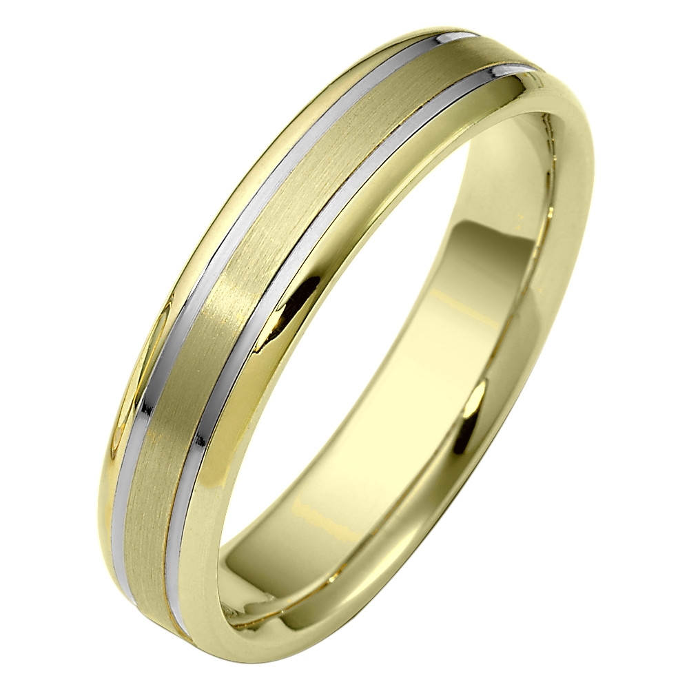 Traditional Style 5mm 14 Karat Two-Tone Gold Comfort Fit Wedding Band Ring
