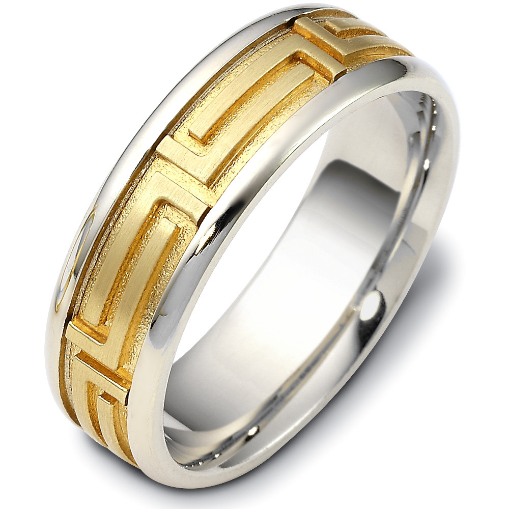 Unique 14 Karat Two-Tone Gold Multi Texture Wedding Band Ring