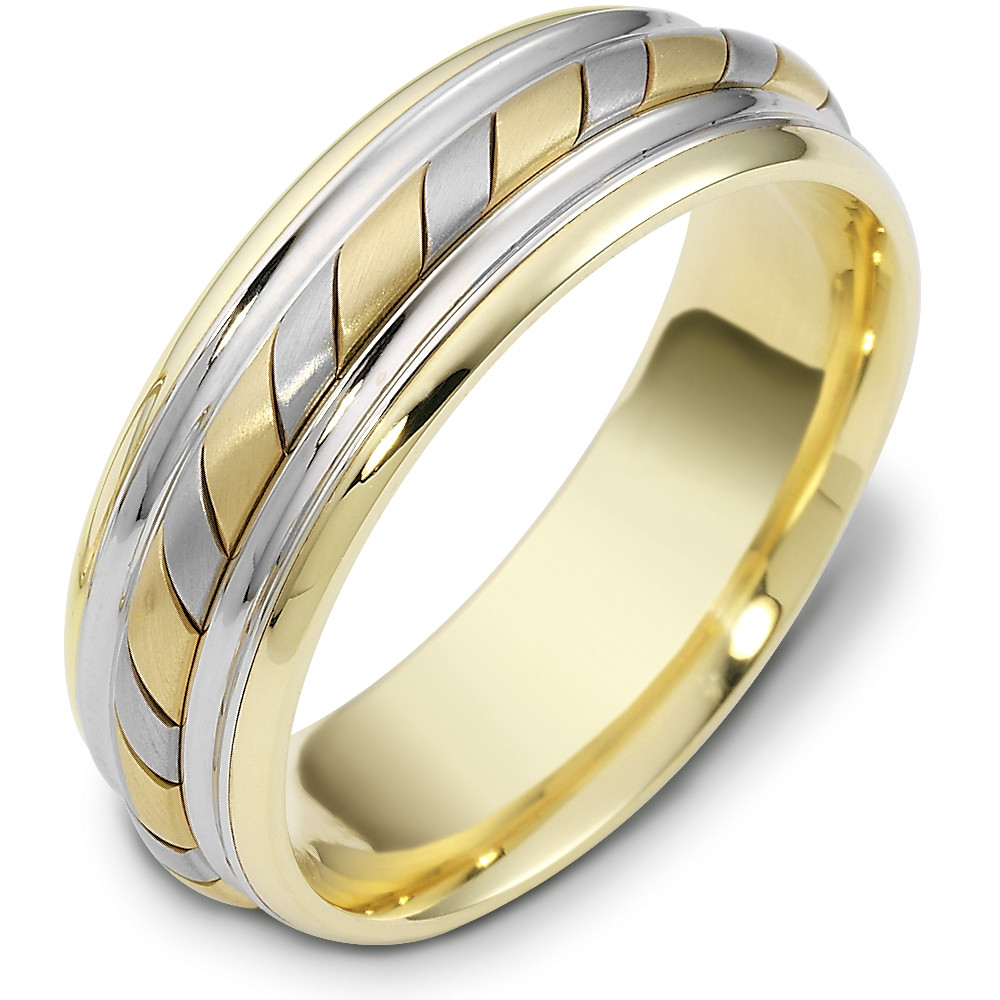 Enjoy the masterful smooth design of this beautifully detailed two-tone gold band. Measuring 7mm wide, this comfort fit band is the perfect blend of style and sophistication. The ultimate in craftmanship and quality. NOTE: This wedding band is custom made to order. Therefore please allow 5-7 business days to manufacture before shipment. This ring is available in a variation of metals, colors & widths. Available metals include all gold types, platinum, palladium, titanium and steel. Please contact customer service with any questions, for a free ring sizer or any special order requests.or call 1-866-437-2504.
