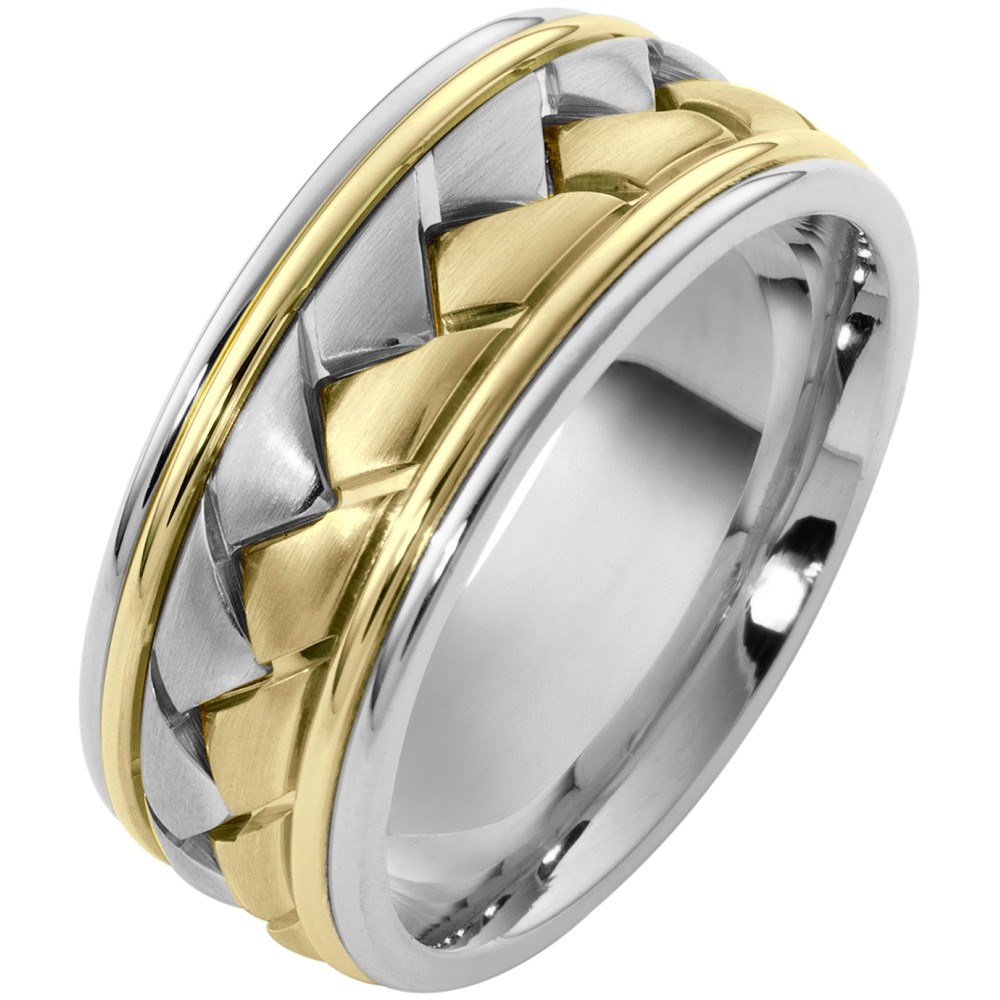 Enjoy the masterful smooth design of this beautifully detailed two-tone gold designer band. Measuring 5mm wide, this comfort fit band is the perfect blend of style and sophistication. The ultimate in craftmanship and quality. NOTE: This wedding band is custom made to order. Therefore please allow 5-7 business days to manufacture before shipment.This ring is also available in a variation of metals, colors & widths. Available metals include all gold types, platinum, palladium, titanium and steel. Please contact customer service with any questions, for a free ring sizer or any special order requests.