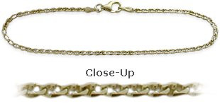 This elegant yellow gold flat gucci style anklet measures 2.1mm or 0.09 inches in width. This anklet is available in your choice of 9 or 10 inches in length.